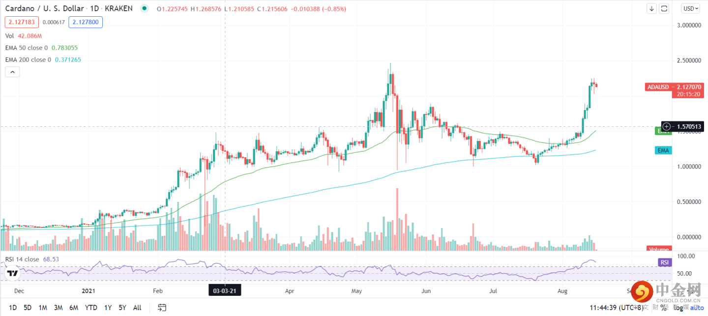 在 8 月 6 日宣布之后,卡尔达诺已经开始吸引用户,并启动了 Alonzo 升级的第三个也是最后一个阶段,这将在卡尔达诺网络上启用智能合约功能。这给 ADA 代币带来了一种兴奋感,其价格从 1.40 美元飙升至 2.25 美元以上,一周内上涨了 50% 以上。这就引出了一个问题,反弹是否可持续?