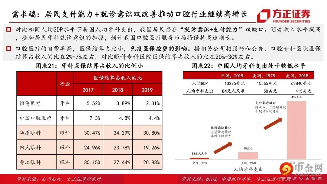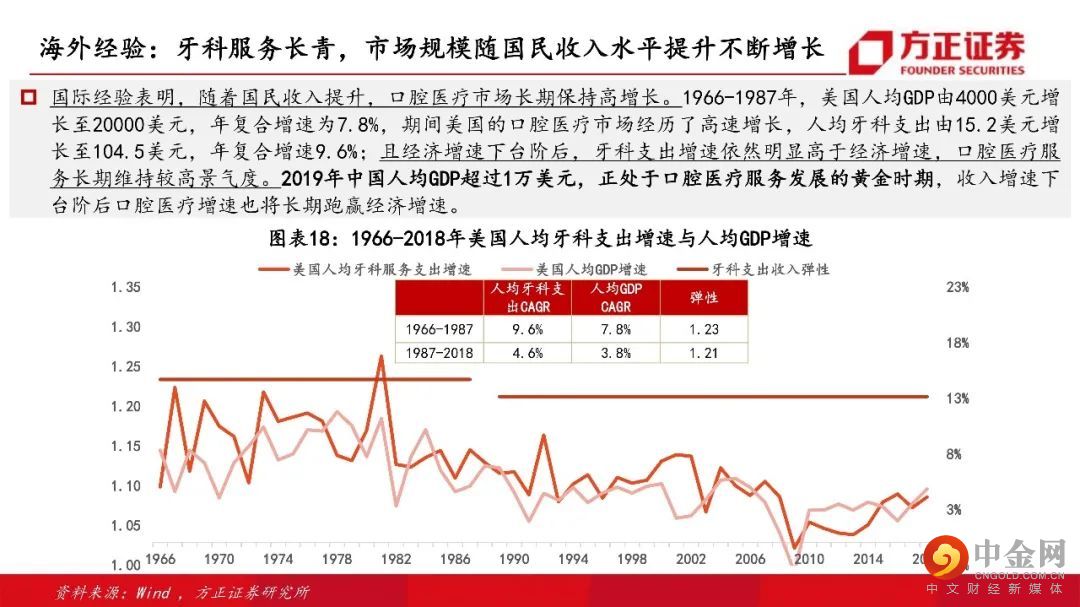1、口腔医疗服务大市场、高增长,服务类型层次丰富,高值项目渗透率增长带来明确的客单价提升路径,海外经验表明口腔医疗服务市场长期维持高于收入水平的增长率;“曲奇模式”失灵造成行业至今缺乏成功的大规模连锁标的,通策医疗的核心优势在于打造了成功的连锁扩张模式,解决了获医、获客两难,目前正处于第三轮扩张期,近年杭州地区牙椅数提升带来的业绩髙确定增长,中长期看省内省外加速扩张成长空间不断向上突破。