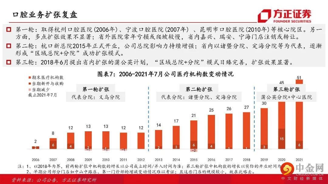 3、通策医疗经过15年探索,其“区域总院+分院”扩张模式日臻成熟,总院支持+医生合伙人持股+品牌赋能缩短新院盈亏平衡周期,助力分院和中心医院在浙江省内快速连锁扩张,同时维持极低的获客成本和适当的人力成本。2021年1-7月公司新开业7家省内分院,并表和新设子公司数量亦加速增长,公司正处于加速扩张期。