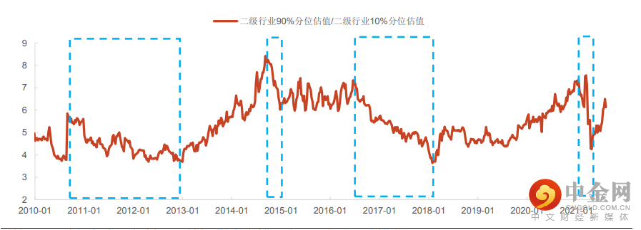 根据光大证券研报,市场风格分化与行业估值分化刻画的是同一现象,可以用行业估值分化程度来衡量市场风格分化程度。