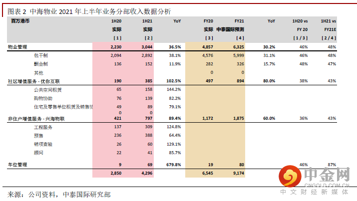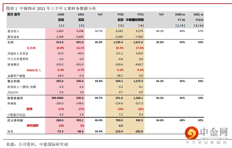 1H21公司应占净利润同比增40.4%至3.93亿港元(下同),高于我们对全年业绩+34%的预测。业绩亮点包括:1)上半年新增外拓合约面积达3,093万平方米,+166% YoY;2)住户增值服务收入同比增102%至3.85亿,占收入比重由FY20的7.6%升至9.0%。由于外拓面积占比上升及业务范围扩张,整体毛利率由FY20的18.3%下降至16.3%,同时SG&A费率进一步下行。我们认为公司亮眼的外拓、增值服务数据,验证了优质服务品牌增长的逻辑。2021年公司开展管理、激励体制改革,增长动力进一步强化。我们维持对公司基本面非常正面的看法。我们下调毛利率假设,上调增值服务增速假设,维持公司盈利预测不变。我们维持8.76港元的目标价以及 “买入”评级。