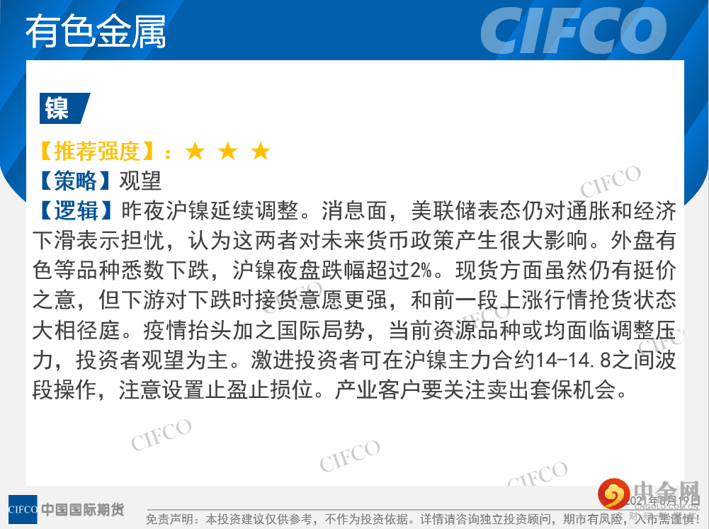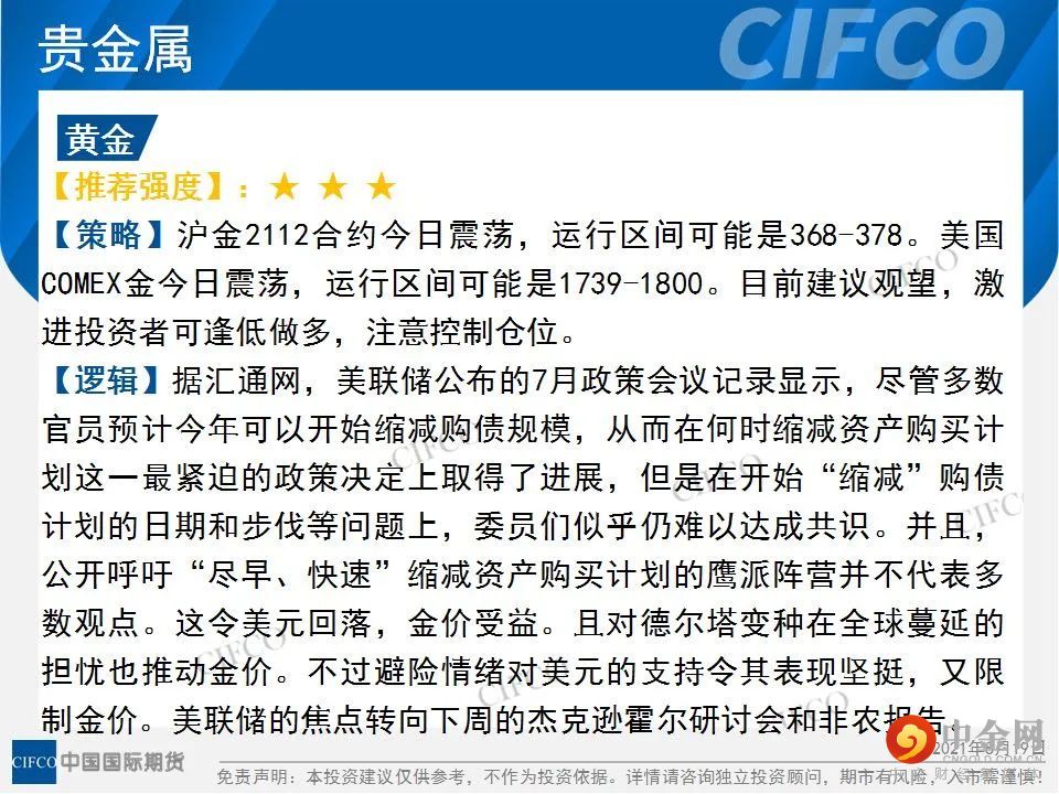 交易提示 | 期货交易保证金率一览(0819)