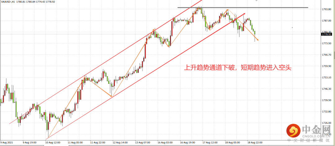 目前黄金短线已开始转空,如接下来再强势跌破1770美元关口,新一轮空头将形成。