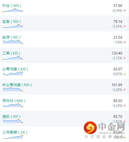 目前从美国股指期货表现依然大幅下跌,受累于即将到来的量化宽松减码。虽然短期提升了市场对美联储收紧政策的预期,但是行情的表现,小盘股领跌反映市场对经济前景的担忧。一方面就业市场可能正朝着美联储的目标改善,但是经济前景却依然被变种病毒的阴云笼罩。从ETF行业走势的表现,其整体趋势继续受阻拐头下行之中,其中能源类产业处于领跌。短期关注:公用事业(JXI),医疗(IXJ),等产业中个股的多头机会。