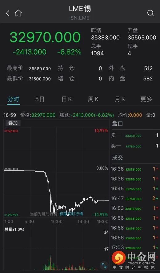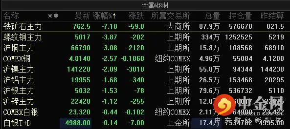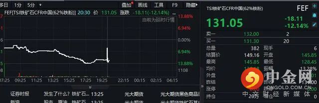 新加坡铁矿石期货下跌12%,至每吨131.05美元,大连铁矿石期货下跌7%,铜价跌至四个月低点,锡一度暴跌11%。