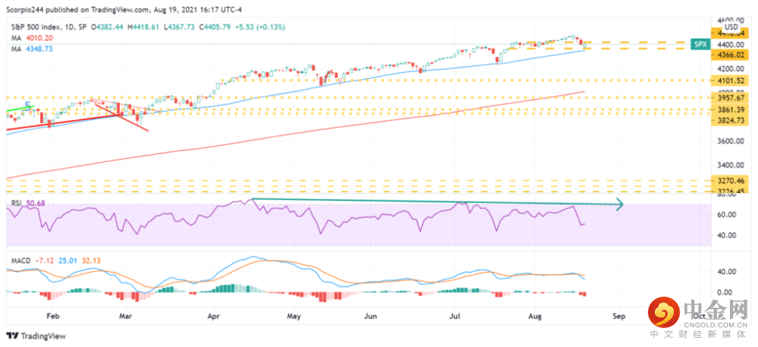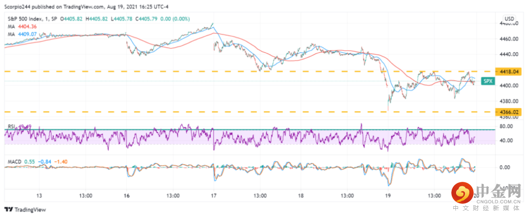 标普500指数今天三次试图升至4420点上方而未果。如果想要在明天看到标普500指数上涨,则需要在开盘时跃升至该水平线上方;我认为会这样;否则,指数会陷入挣扎中。