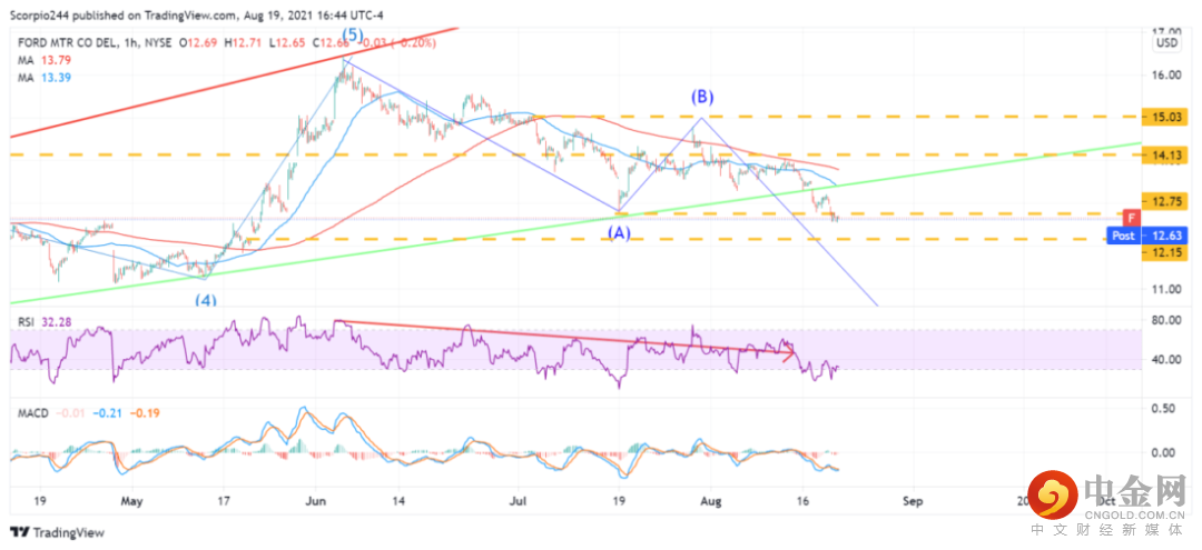 福特汽车下个关键的支撑区域为12.15美元;这也是一个等待被填补的缺口。