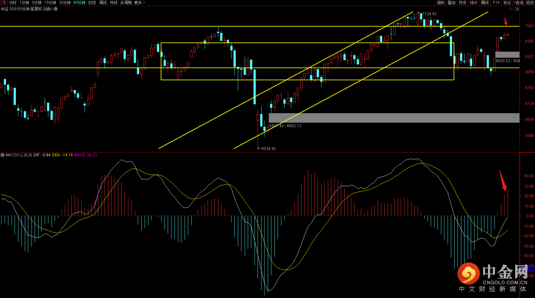 中证500再次出现反弹走势,关注上方中枢上沿的压制,短期关注7000点附近的支撑,如果出现跌破则大概率会出现再次的回落寻找支撑,由于目前日线顶背驰的形成,后续在反弹结束后大概率会再次回落。