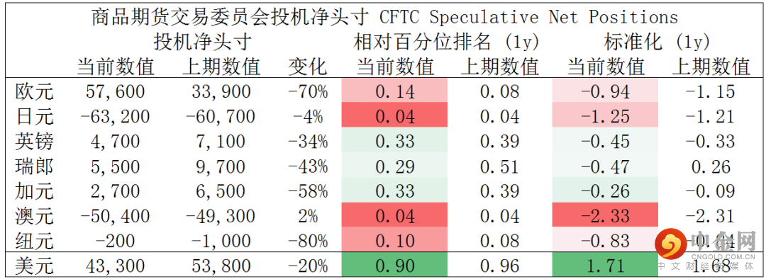 CFTC资金流数据显示,澳元、日元空头处于极值,因此,预计短期随着资金流入并支持其回涨,另外,美元多头也处于极值。