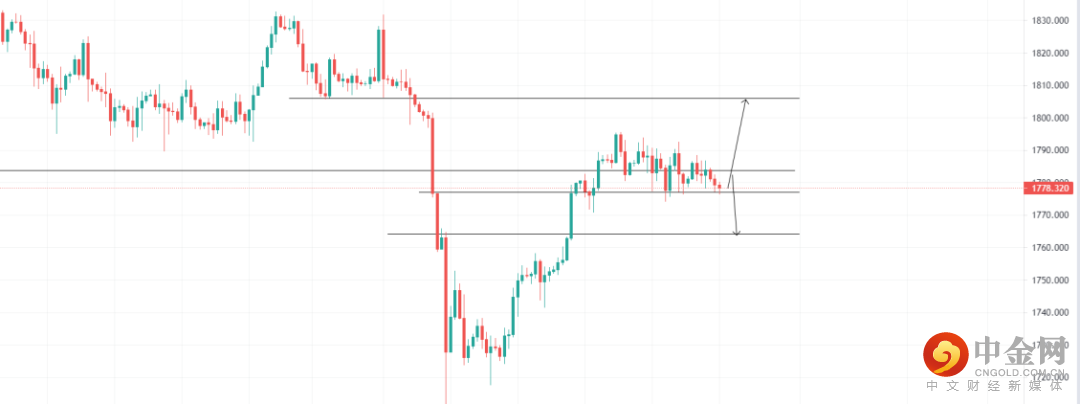 美元指数受支撑,黄金承压,关注1777.11的支撑位,4小时回调收多即可看多至压力位1806.00位置,止损1773.08;关注1783.72压力位,4小时受阻收空即可看空至1764.11,止损1788.96