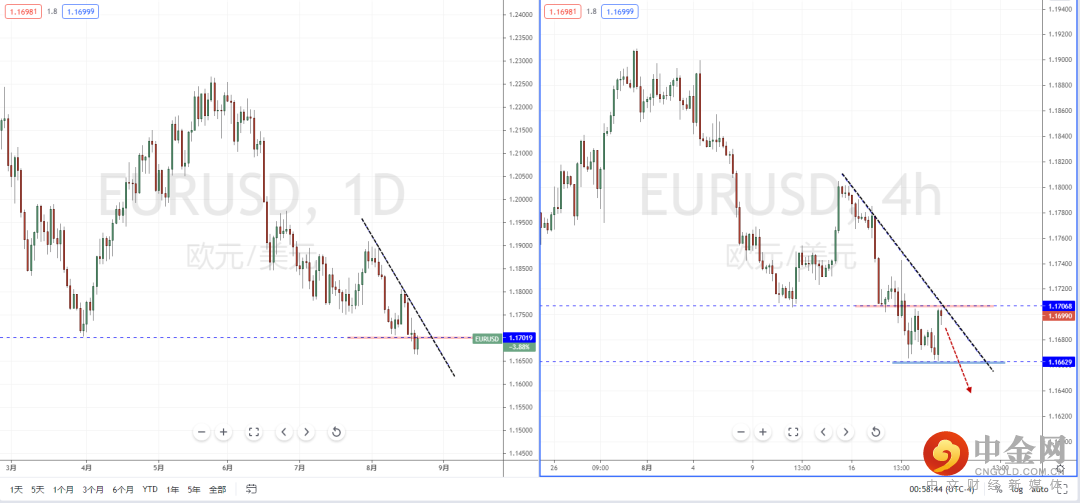 欧美天图:短期欧美在坚决跌破水平支撑带1.17019附近后在处于上行反弹之中,虽然整体格局处于空头阶段,但因美元指数的短期回落,使得欧美弱势上行反弹。从日内4小时级别,价格在回测压制带1.17068附近。可适当关注价格在此区间的表现,如果继续上行将维持反弹趋势。反之,则受阻破位下行。