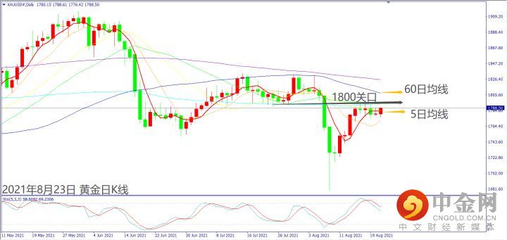 全球已开发国家预计下个月进行新冠疫苗加强剂,短线避险资金仍支撑黄金守在1780美元附近整理。若周一至三欧美公布经济数据不佳,一旦股指再度出现大幅度崩跌,有机会推升黄金挑战1800关口。若周四(26日)杰克逊霍尔年会对于经济增长表示乐观,带动股指和美元指数,不排除黄金可能再度转跌。