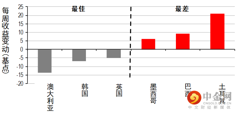 多数欧洲政府债券也上升(息率下跌),延续美国市场的走势及股市的避险情绪。基准的德国十年期政府债券息率跌3个基点至-0.50%。非核心债券息差微升,意大利十年期政府债券息率变动不大,维持在0.55%。英国政府债券息率上周低收3个基点至0.52%。