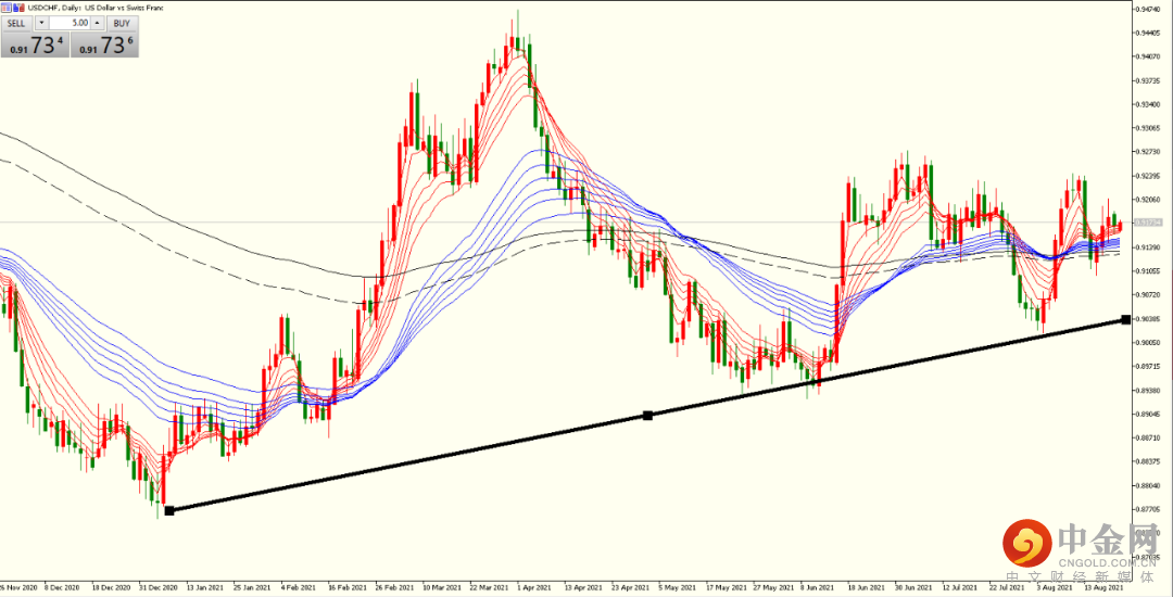 美加货币对未来上涨概率更大。近期铁矿石价格持续走弱,澳元下挫。同样,未来如果石油价格走弱,那么加拿大货币下跌的概率将增大。因此,中期黑色的线是强支撑,可以作为止损价格设定。中长期美元走强,USDCAD走强概率持续增加。