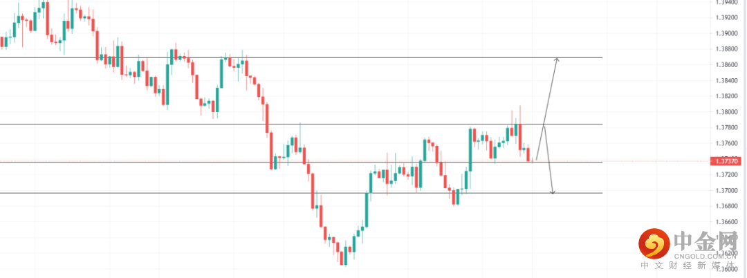 美元指数受承压,英镑下跌,关注1.37359的支撑位置,4小时回调收多即可看多至压力位1.38693,止损1.37217;关注1.37842压力位,4小时受阻收空即可看空至1.36966支撑位,止损1.38048