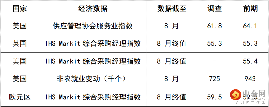 今日公布的经济数据 (2021年9月3日)