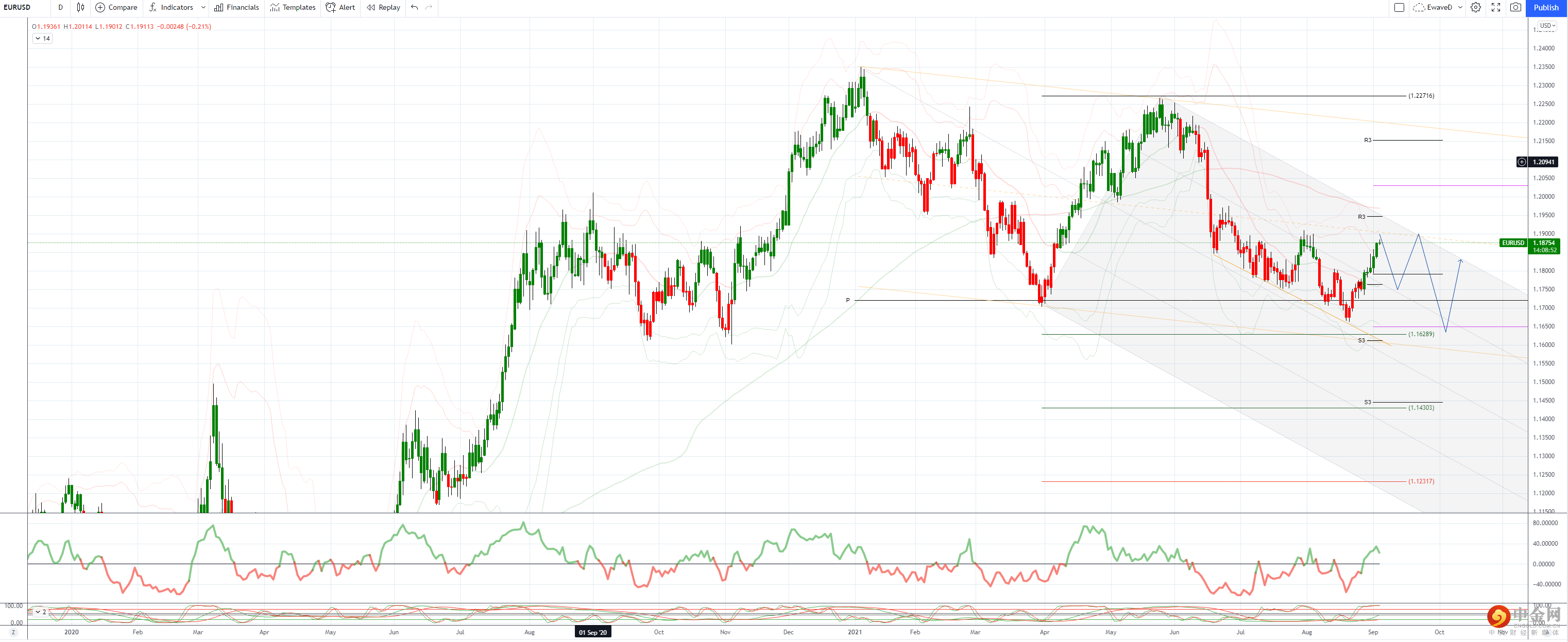 1.1894,5月8月下跌38.2%,然后7月高点1.1909第一阻力