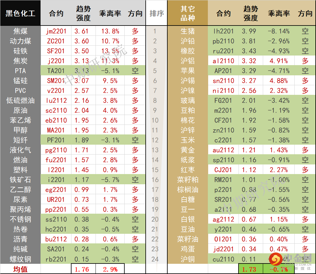 中期商品趋势榜 | 生猪空头趋势不减,焦煤焦炭多头正盛(0902)