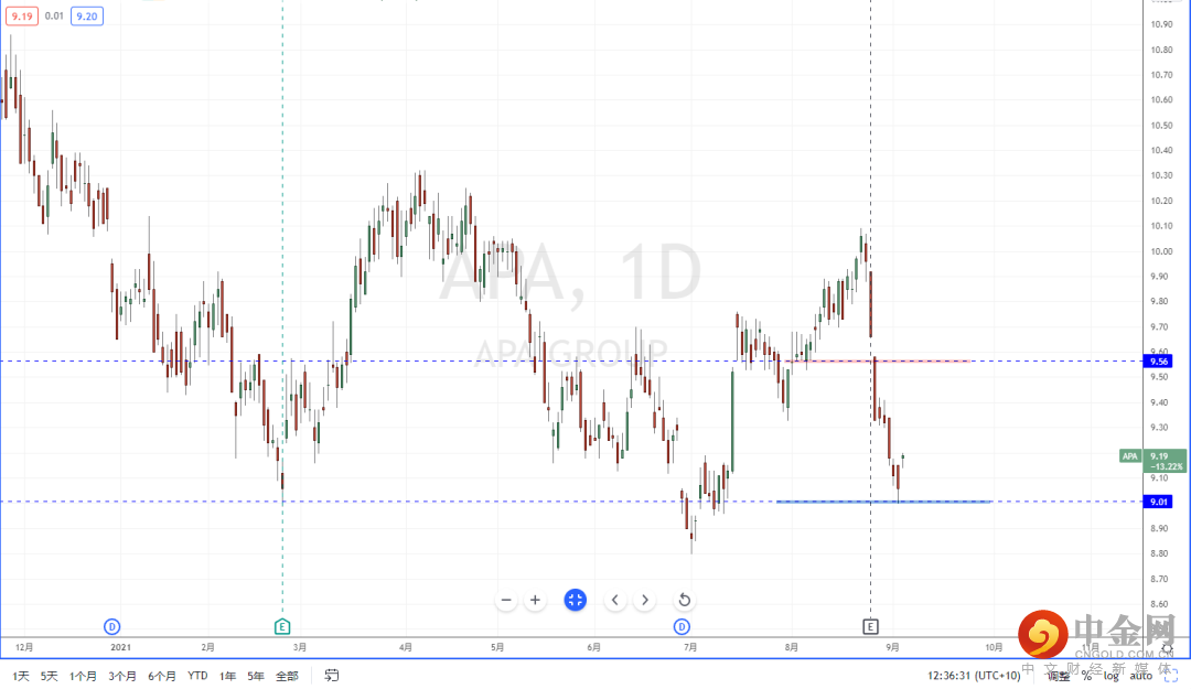 APA:在近期市场环境适当得到缓解之后,大部分ETF产业也逐步转势向上。从目前APA整体趋势在短期市场刺激下,测试前期水平支撑带9.01附近止跌起稳。虽然尚未形成多头格局,可适当关注价格止跌后反弹上行的多头机会,上方区间目标位置参考9.56一带。