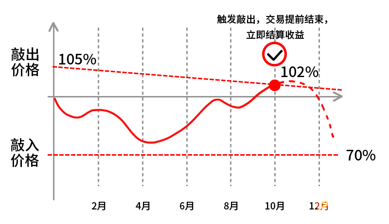 有锁定期的雪球产品会先设置2或3个月的锁定期,锁定期内不设置观察敲出日。锁定期结束后开始根据约定的敲出观察日每月进行一次敲出观察。因此投资者在选购有锁定期的雪球产品时需要注意,即使标的价格在锁定期内的表现超出产品约定的敲出价格,也无法触发敲出事件。