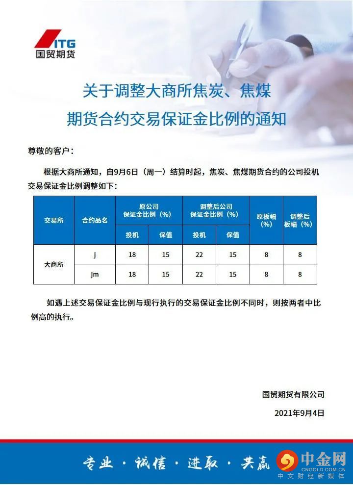 交易提示 | 关于调整大商所焦炭、焦煤期货合约交易保证金比例的通知