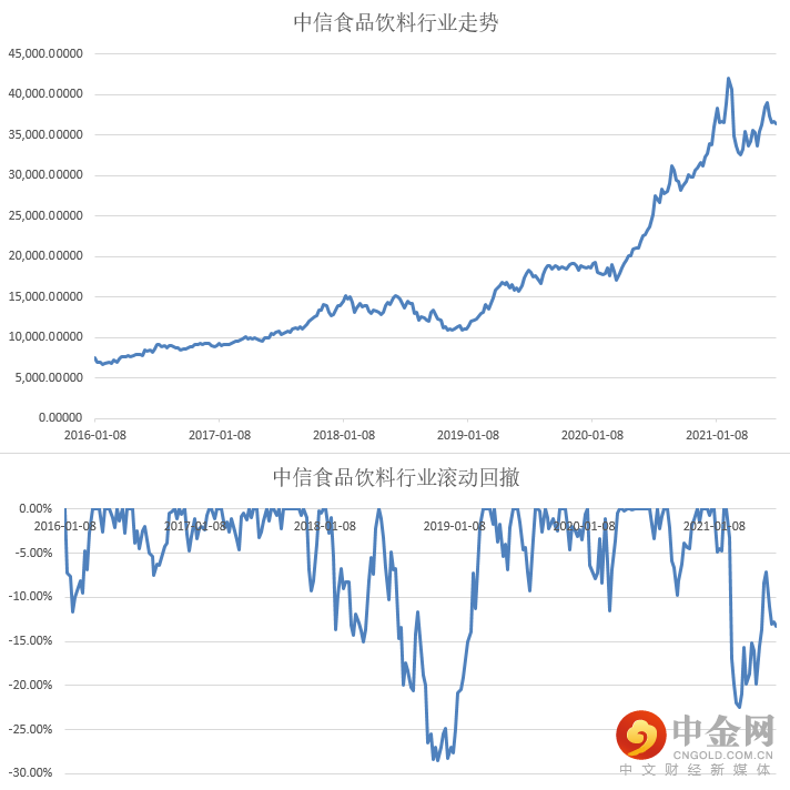 从上图中我们可以清晰的看到食品饮料行业在过去5年多的时间里经历过很多次回撤,最大一次在18年最大回撤接近30%,但是随后恢复了业绩,回撤和调整给了投资者一次新的低成本的上车机会。