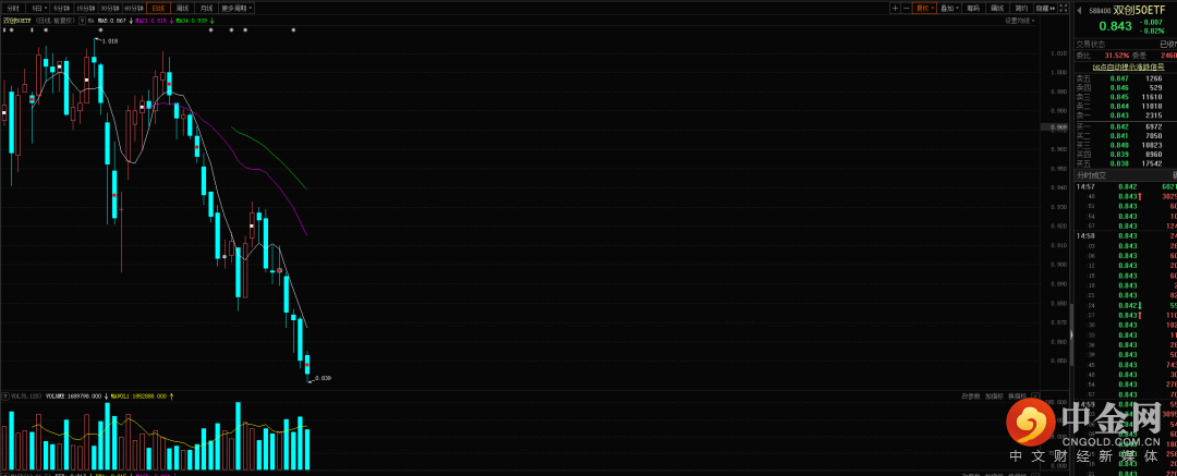 中证500形成了六十分钟的顶背驰结构,但由于在这个位置出现了明显的堆量结构,后续行情在没有出现跌破六十分钟上升趋势通道线之前大概率还能继续维持向上走势,可以注意把控回落的节奏点。