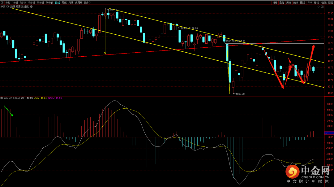 沪深300短期需要关注是否会形成w底结构,如果能够放量突破前期颈线位则大概率会去先挑战下降趋势轨道上轨的压制,而如果在突破下降趋势轨道线出现放量那这个突破相对来说就比较稳妥,届时就可以关注前期向下的跳空缺口,将可能出现回补行情。