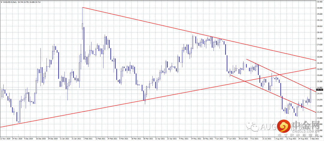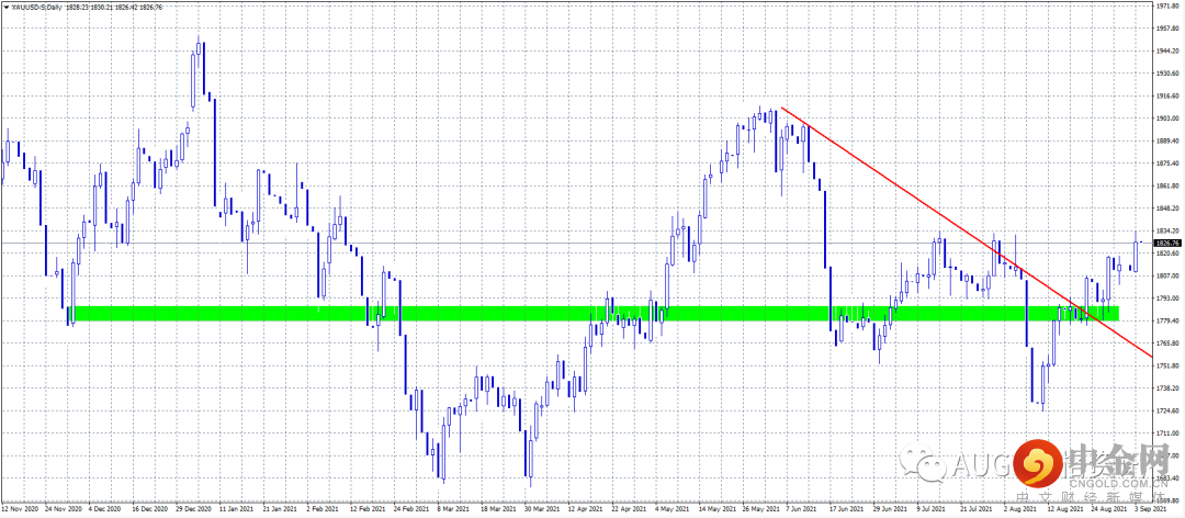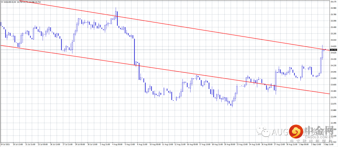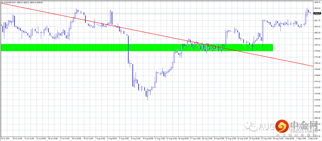 4) 路透9月3日 - 金价周五上涨逾1%,触及两个半月来最高,8月美国就业增长低于预期,拖累美元走低,令人对美国联邦储备委员会(美联储/FED)缩减量化宽松的时间表产生怀疑。1733 GMT,现货金上涨1.2%,至每盎司1,830.71美元,稍早一度触及6月中以来最高的1,833.80美元,周线有望连续第四周上涨。美国黄金期货结算价上涨1.2%,报每盎司1,833.7美元。