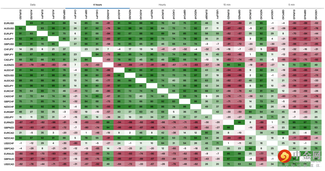 上图中,我们可以看到不同货币对在不同时间段的相关性。在您的交易策略中使用这种相关性,可以更好的管理风险。