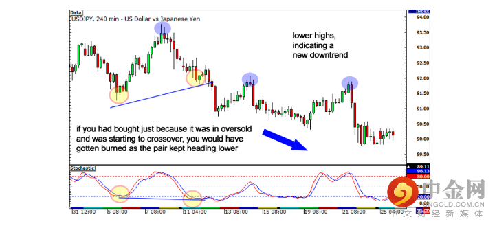 最好等待随机指标向下交叉,以确认该货币对确实向下。