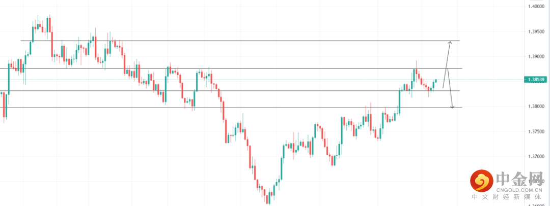美元指数受承压,英镑上涨,关注1.38315的支撑位置,4小时回调收多即可看多至压力位1.39316,止损1.38194;关注1.38759压力位,4小时受阻收空即可看空至1.37973支撑位,止损1.38924