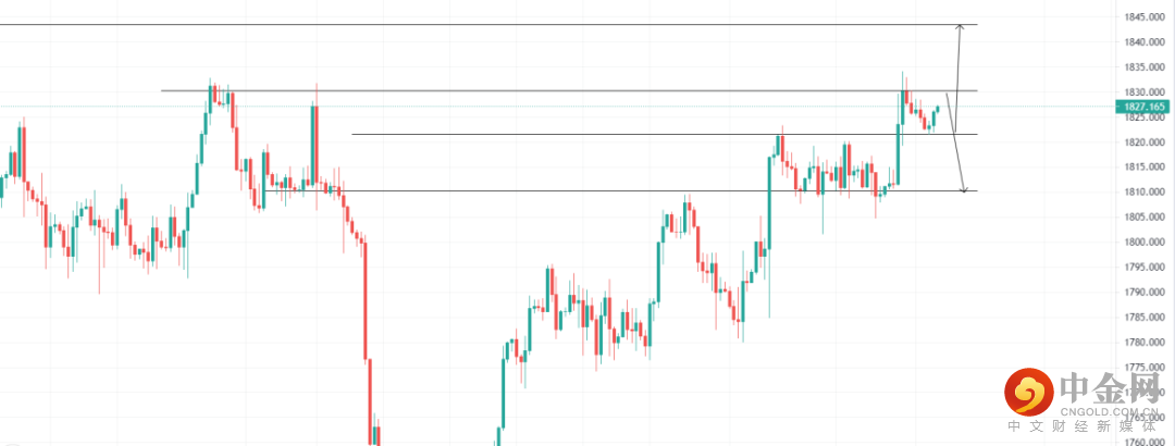 XAUUSD:美元指数受承压,黄金上涨,关注1821.56的支撑位,4小时回调收多即可看多至压力位1843.44位置,止损1818.67;关注1830.23压力位,4小时受阻收空即可看空至1810.22,止损1835.11