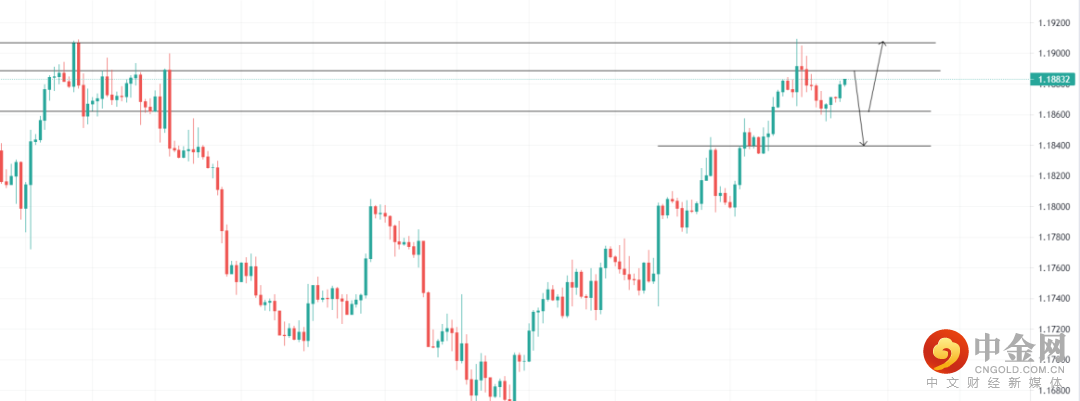 美元指数受承压,欧元上涨,关注1.18622支撑位,4小时回调收多即可看多至1.19067,止损1.18541;关注1.18886的压力位,4小时受阻收空即可看空至1.18397,止损1.19011