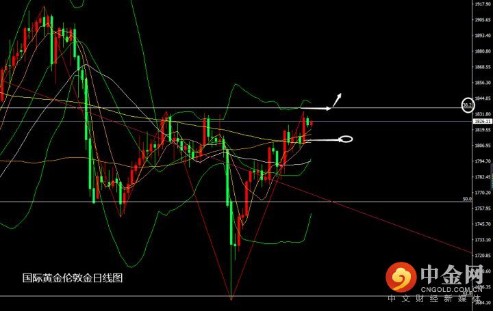 下方则关注5日均线1820美元附近,进一步关注100日均线附近的1810美元,日收线在此上方逢低看涨,日收线在此下方,转高空。