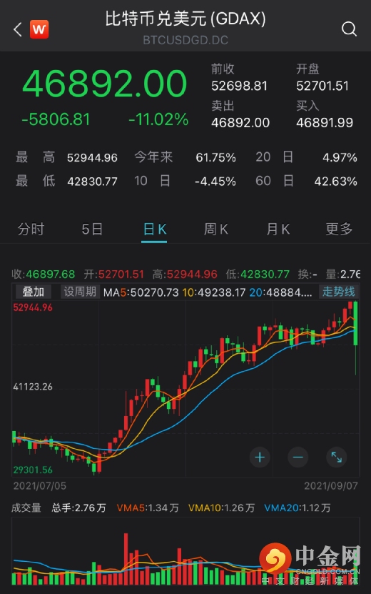 昨夜,比特币价格突然闪崩,一个多小时内,从50000美元左右的价格,一度跌至42830美元的低点,跌超7000美元,日内跌幅达18.73%。