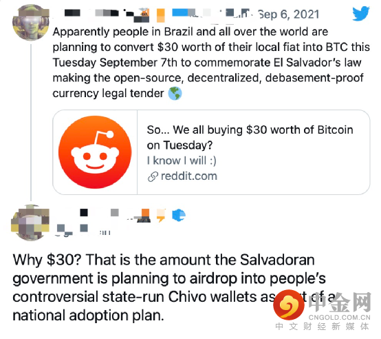 9月7日,Reddit和Twitter等平台上的用户正在讨论购买价值30美元的比特币的计划,以纪念萨尔瓦多的比特币法生效。