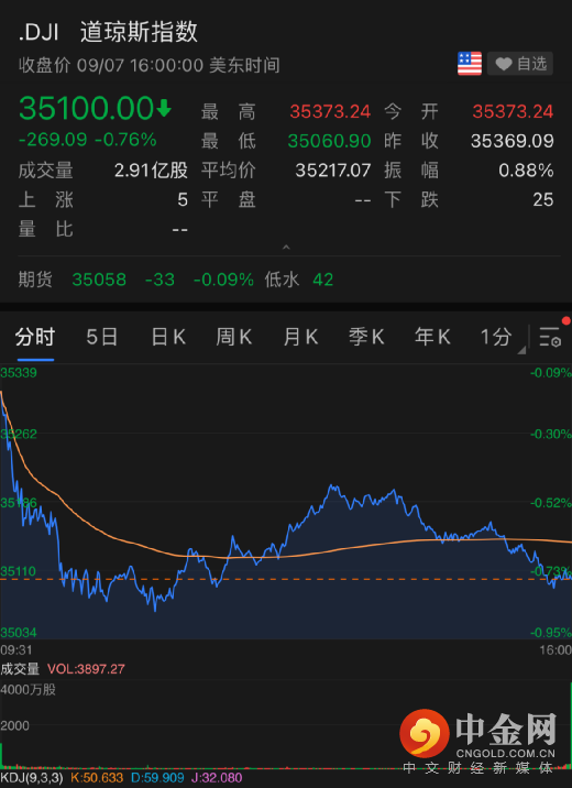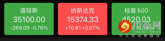 当地时间周二,截至收盘,道琼斯指数跌0.76%,或269点,报35100.00点;标普500指数跌0.34%,报4520.03点;纳斯达克指数涨1.07%,报15374.30点。