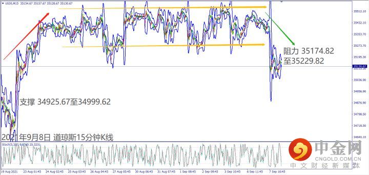 日级别线图,长阴烛掼破30日均线,5日均线下弯反压,可能回测60日均线;15分钟K线,出现箱型反转,盘整底部冲不过,大有可能下探支撑。