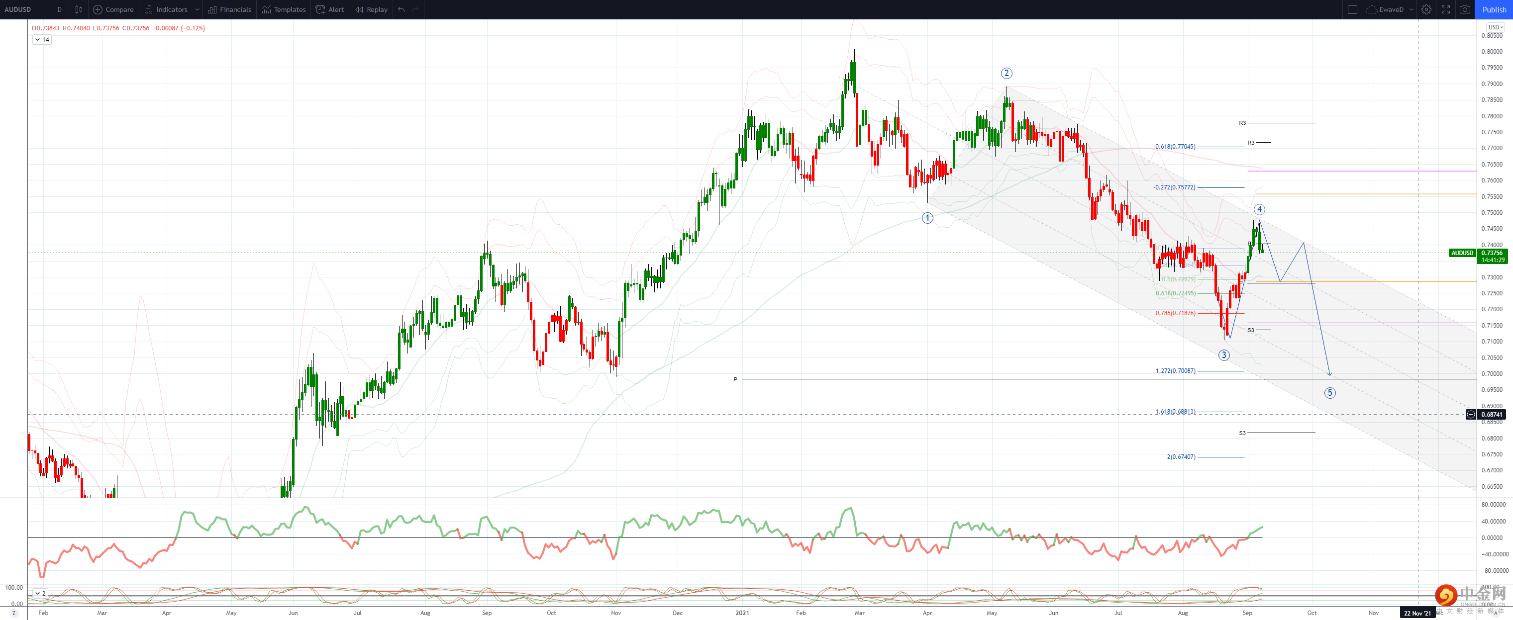 支撑位在 0.7359 的 10 日均线,突破将转移下行压力