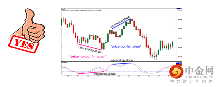 与价格的摆动高点和低点与指标的摆动高点和低点保持垂直对齐。