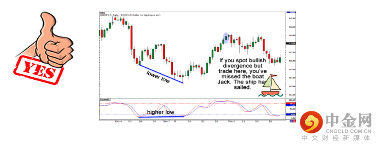 这次你错过了船。您现在所能做的就是等待另一个摆动高/低形成并开始您的背离搜索。