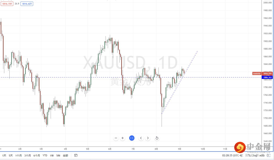 由于目前全球经济疲软,一些地区经济尚处于在持续低迷状态,从美国近期数据的表现,在放缓阶段下美联储的缩债步伐。同时,从上周美国非农数据也极端下行,在市场资产表现中,因美联储的紧缩购债计划,使得近期资产风险标的有所有转向。同时也因其它诸多因素,如疫情的严峻、美国政局忧虑。在避险情绪提升之时,也使得贵金属品种短期得以支撑。