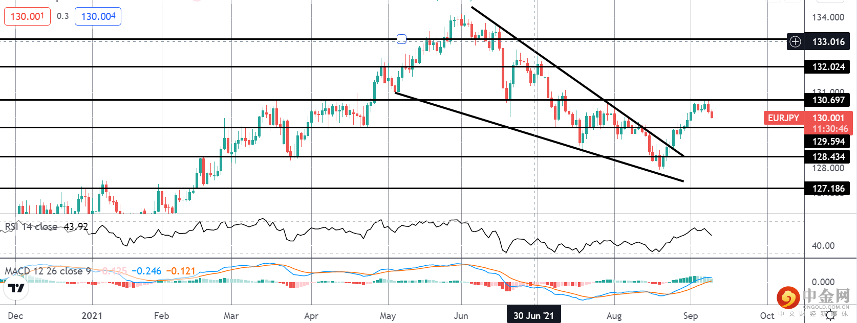 最近欧元兑日元的看涨突破使价格停滞在测试 130.69 水平。然而,指标仍然看涨,虽然价格保持在 129.59 水平上方,但如果欧元今天因欧洲央行的回应而走高,则仍有继续突破的空间。突破 130.69 水平将瞄准下一个上涨至 132.02。