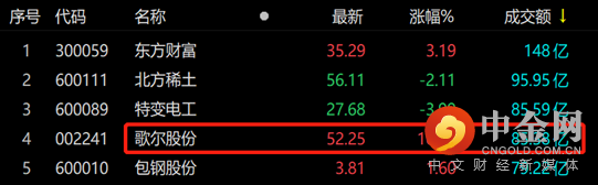 此外,歌尔股份昨日出现2笔合计2.55亿元折价大宗交易,成交价每股47.27元,方正证券新昌鼓山西路营业部卖出,机构接盘。