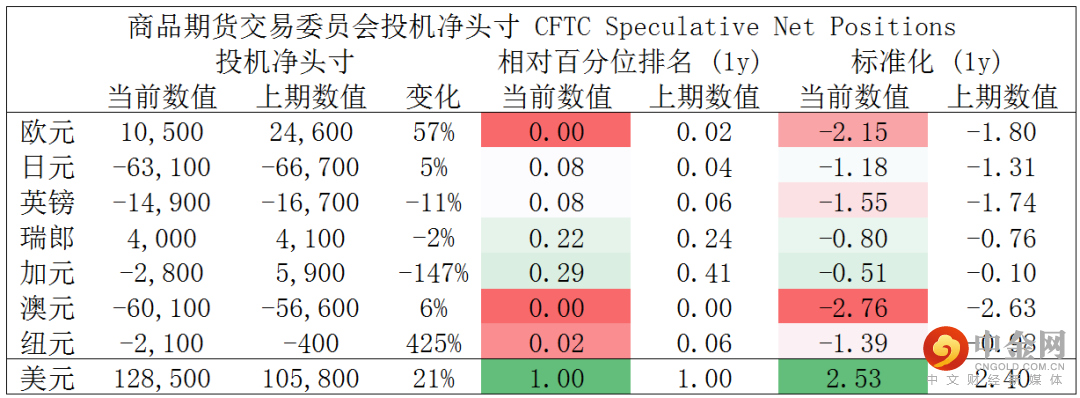 CFTC资金流数据显示,澳元空头处于极值,因此,预计短期随着资金流入并支持其回涨,另外,美元多头也处于极值。