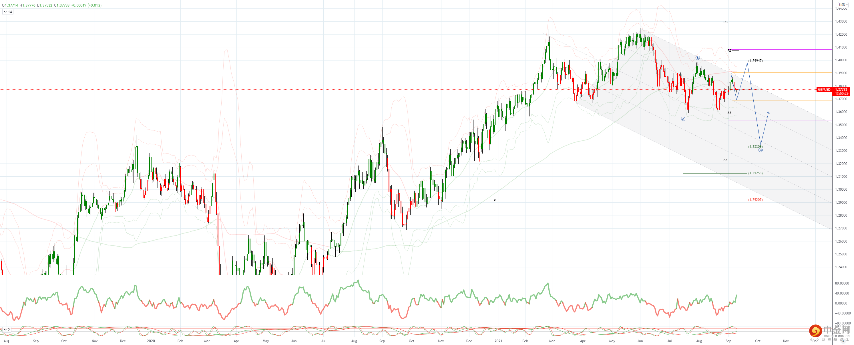 NY 1.3727低点1.3712,8-9月反弹支撑61.8%