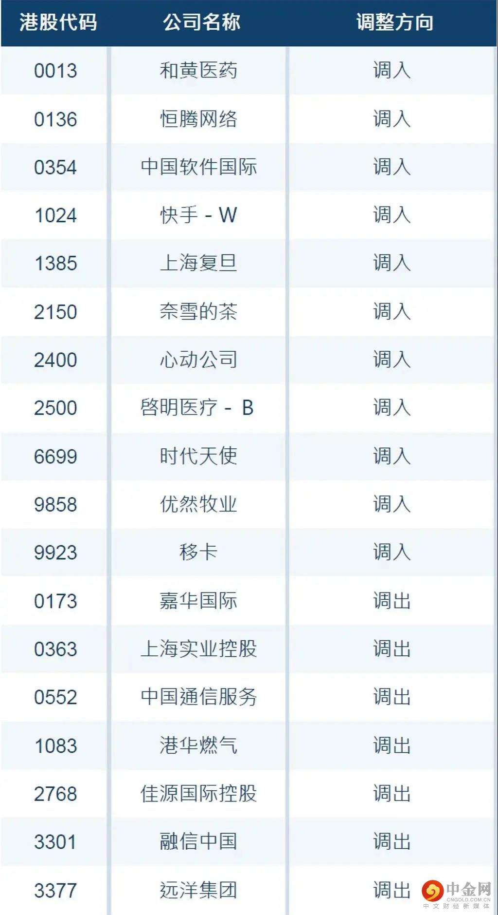 深港通下的港股通股票名单,共有14只调入、12只调出,具体名单如下: