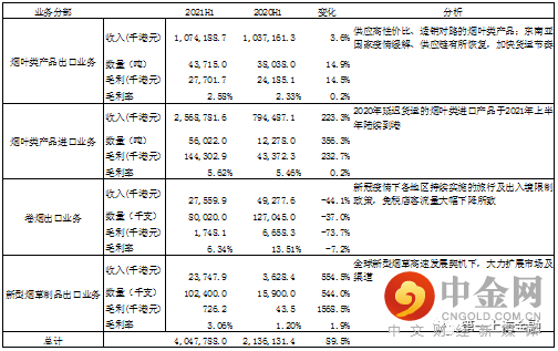 中烟香港成立于2004年,为中烟国际集团有限公司负责资本市场运作和国际业务拓展的指定境外平台。公司主要经营四项业务,分别为烟叶类产品出口业务主要向东南亚、香港、澳门及台湾地区出口烟叶类产品;烟叶类产品进口业务主要自全球原产国或地区(除包括津巴布韦在内的受制裁国家及地区外)进口烟叶类产品至内地;卷烟出口业务主要向泰国、新加坡、香港及澳门的免税店及中国内地境内关外的免税店直接销售或通过分销商销售CNTC集团旗下卷烟;及新型烟草制品出口业务主要向全球海外市场出口新型烟草制品。上半年公司整体业务发展有所恢复,新型烟草业务增长迅速。