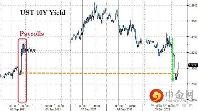 美国10年期基准国债收益率在美股盘前重上1.34%短线转升,美股开盘后持续下行,30年期美债标售结果公布后,美股午盘一度降至1.29%下方,创9月2日上周四以来盘中新低,美股收盘时约为1.30%,纽约尾盘时略低于1.30%,日内降约4个基点。